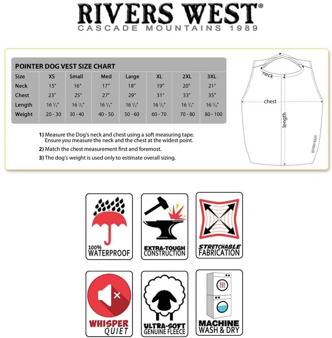 The RIVERS WEST Retriever Vest is made of midweight fleece fabric and has flotation inserts for neutral buoyancy.