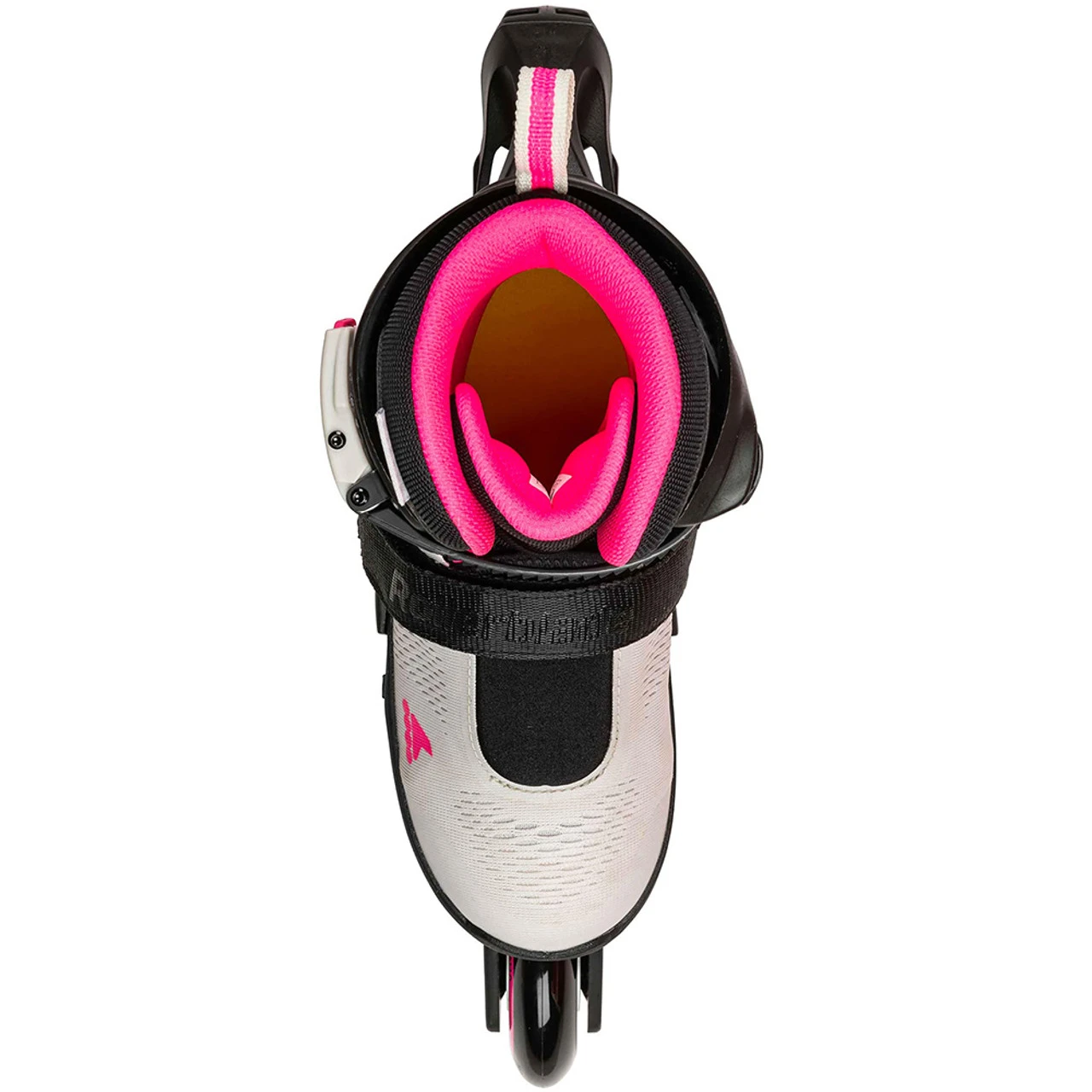 Microblade Free is a high-quality lace-free adjustable skate. Using Rollerblade expertise, skates are adjustable four full sizes. An easy-to-use extension system works with the push of a button and markers in the toe area align the skates to the correct size. Junior Fit support includes an engineered mesh for breathability and provides enhanced comfort. A durable frame design lowers the center of gravity to improve stability, balance and control. 76mm Performance wheels/SG3 bearings are ideal for kids and upgrading to a faster Microblade 3WD can be achieved later by purchasing larger wheels; brake is standard. Microblade FREE 3WD is the frustration-free choice for kids.