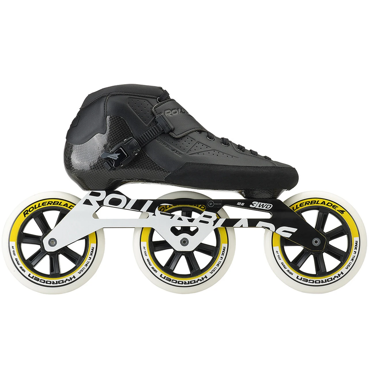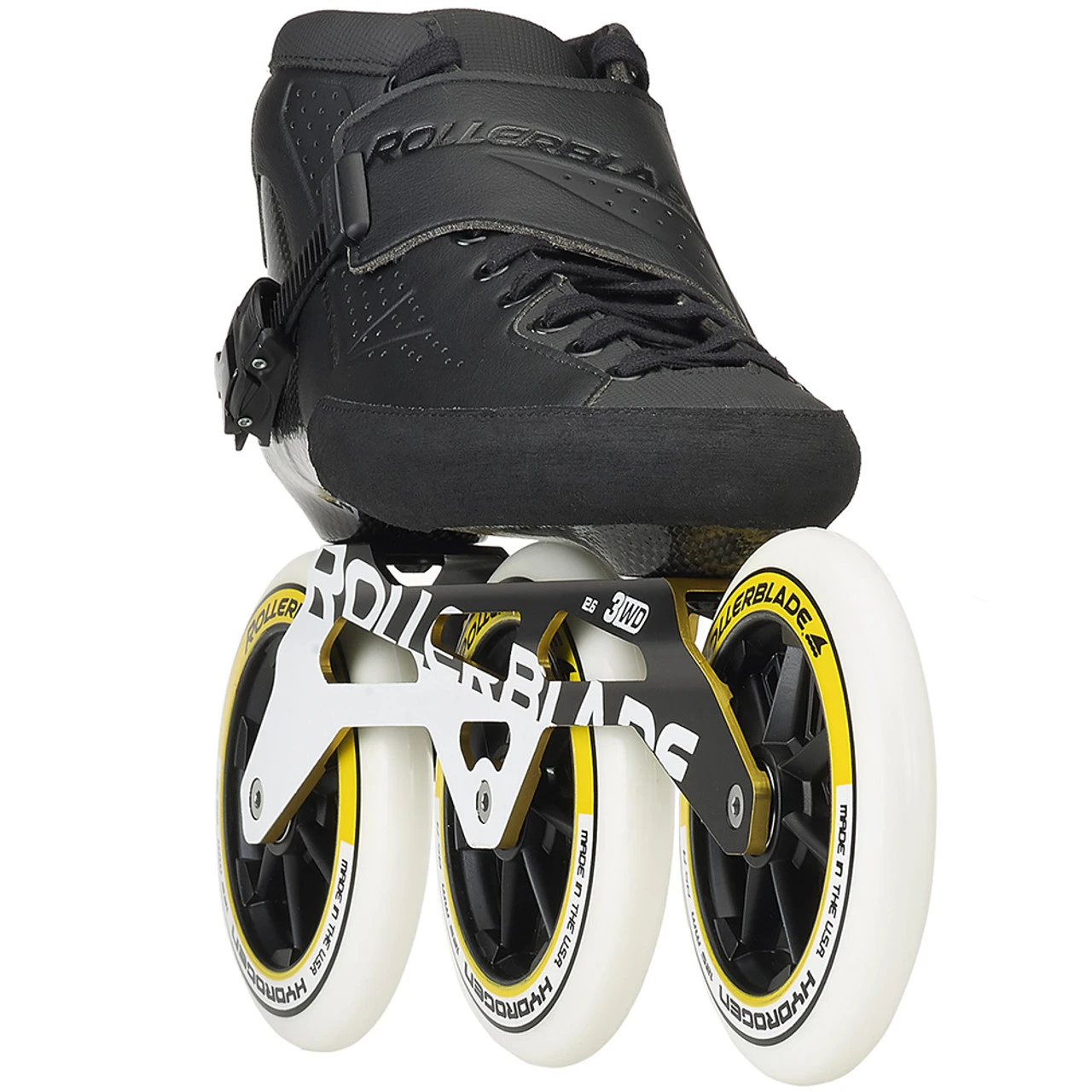 Powerblade Pro 125 is a premium race skate with ultimate components. Designed for speed skating and developing advanced skating techniques, the boot is handmade in Italy by reknowned boot maker Davide Mariani. Every feature of the Powerblade 125 3WD has been carefully selected, including a heat-moldable carbon boot customizable to foot shape and fit preference, with detailed instructions included. Micro-buckles and an anatomical liner ensure a snug fit. Extruded aluminum 3WD frames add extra competitive advantage with faster power transfer and efficiency, increased maneuverability and less vibration; brake not included. Hydrogen 125mm wheels and Twincam ILQ-9 bearings maximize speed with excellent wear. Powerblade Pro 125 is for the professional racer.