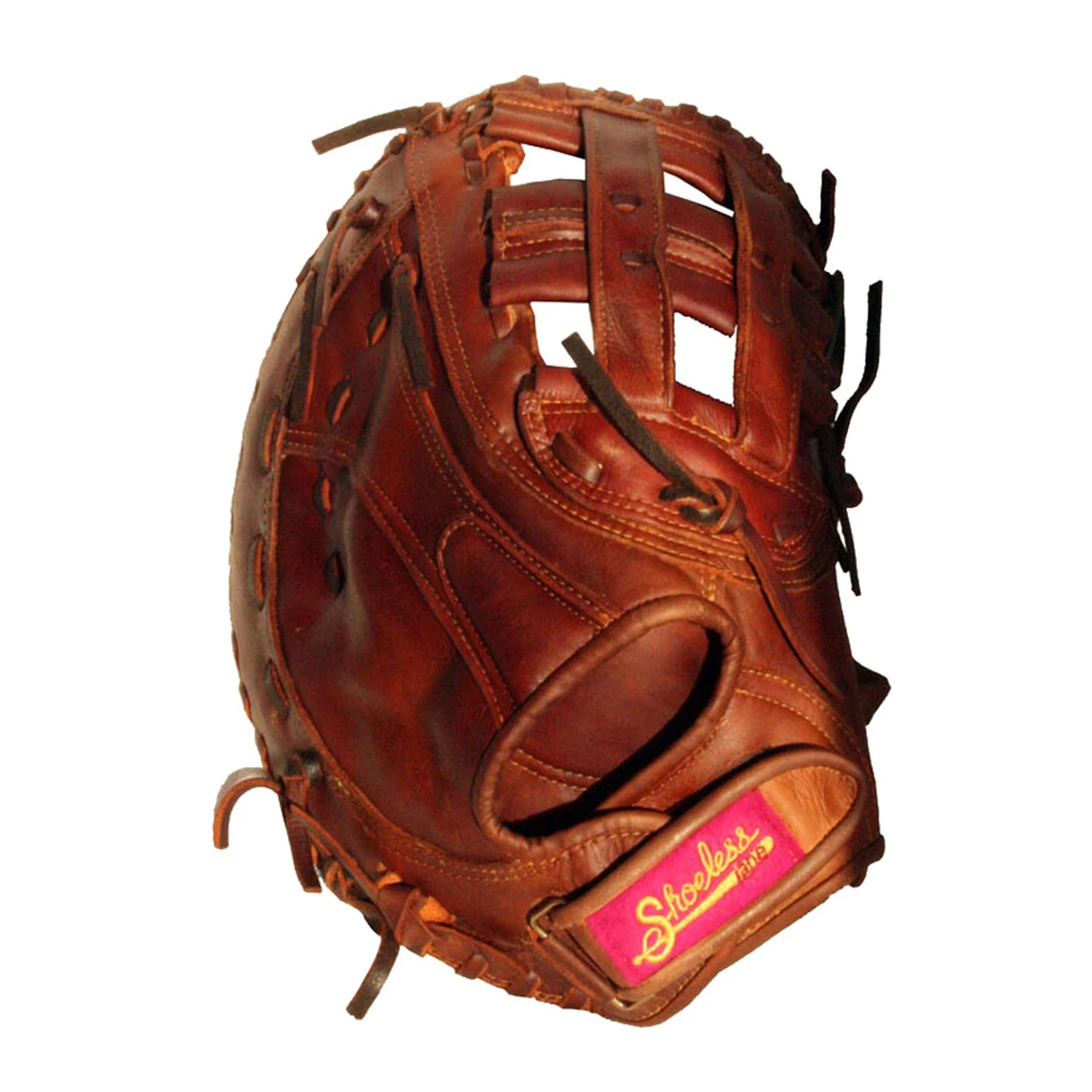 Shoeless Joe Ballgloves 13-Inch Shoeless Jane Women’s Fastpitch Softball First Base Mitt is great for teenage and adult first base player. We recommend this first base mitt for girls over 13 years of age and 5′ 5″ and taller. The webbing for first base mitts is strong and can help secure the ball from any type of throw. All of the Shoeless Jane Fastpitch Softball Gloves come with an adjustable wrist strap to help secure the glove to ball players hand.
