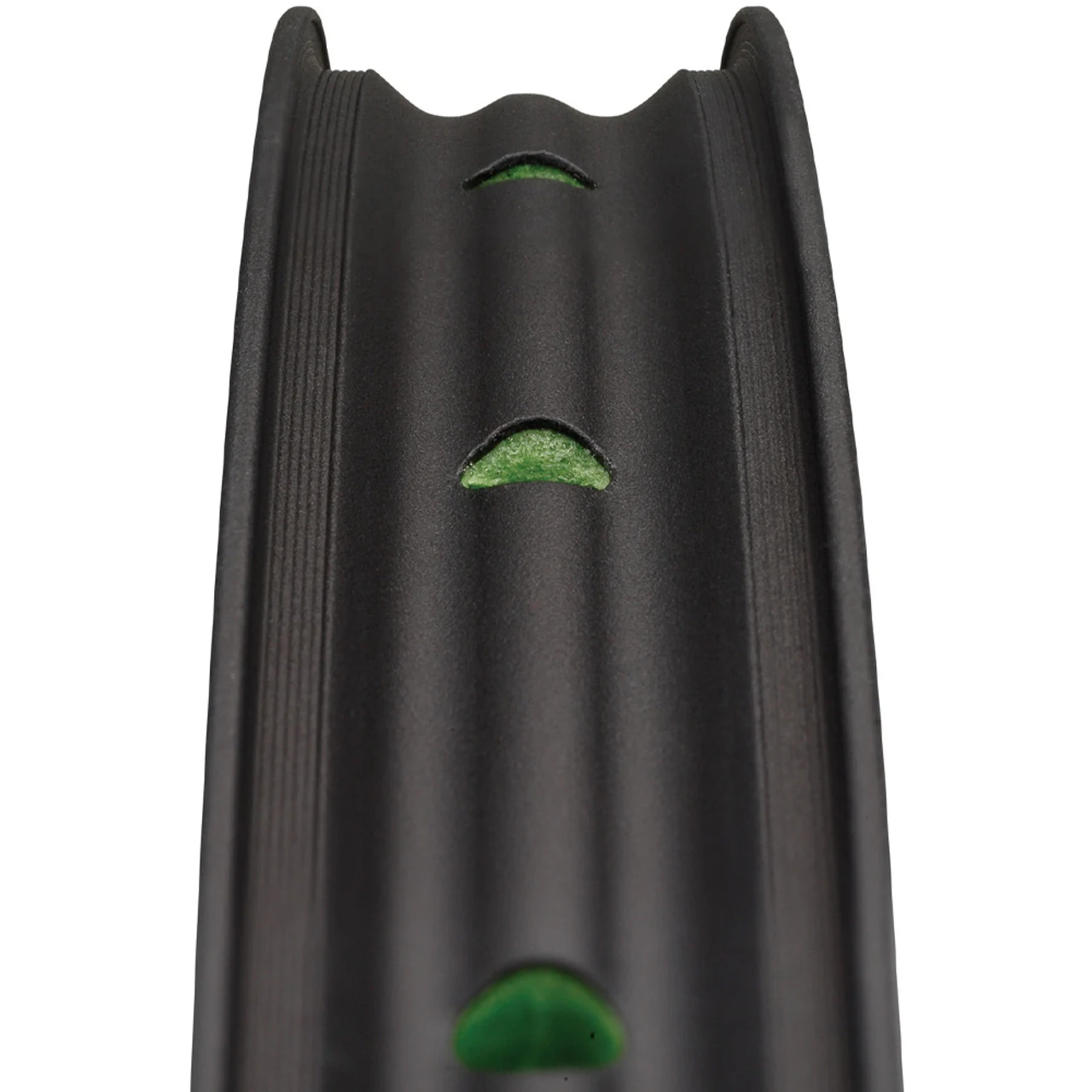 Vibrocore inner well, reduces the transmission of harmful vibration frequencies, meaning less vibration for the suspension and rider, also increasing the fatigue life of the rim. 30mm inner width is extremely versatile, fitting tires from 2.0″ to 2.6″, and even allowing +size tire use without negative squaring off of tire profiles.