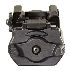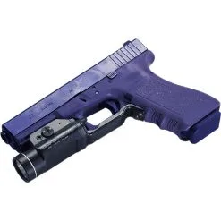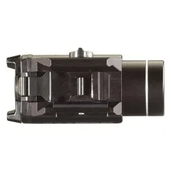 Lightweight, compact, lithium battery powered Gun-Mounted Tactical Light featuring the latest in shock-proof power LED technology and providing at least 2.5 hours of continuous run time. Rail clamp designed to rapidly attach/detach from side of weapon. Tethered battery door and latch mechanism prevents battery door loss while providing easy battery replacement. When enabled, strobe activated on two or more momentary paddle hits (TLR-1s only).