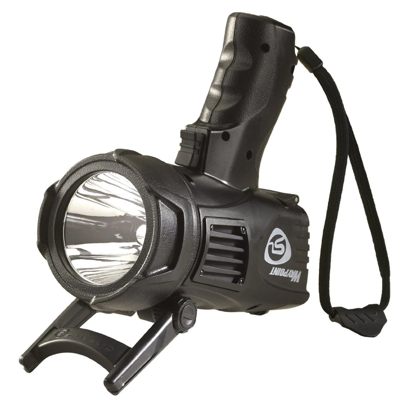 Handheld and powerful, the STREAMLIGHT Waypoint with 12V DC power cord, Blister, Black (44905) offers high and low intensity modes, emergency signal mode, and the latest in power LED technology. The spotlight provides portability and long runtime using 4 C-sized alkaline batteries or endless runtime with the 12-volt DC power cord.