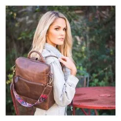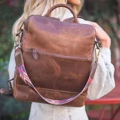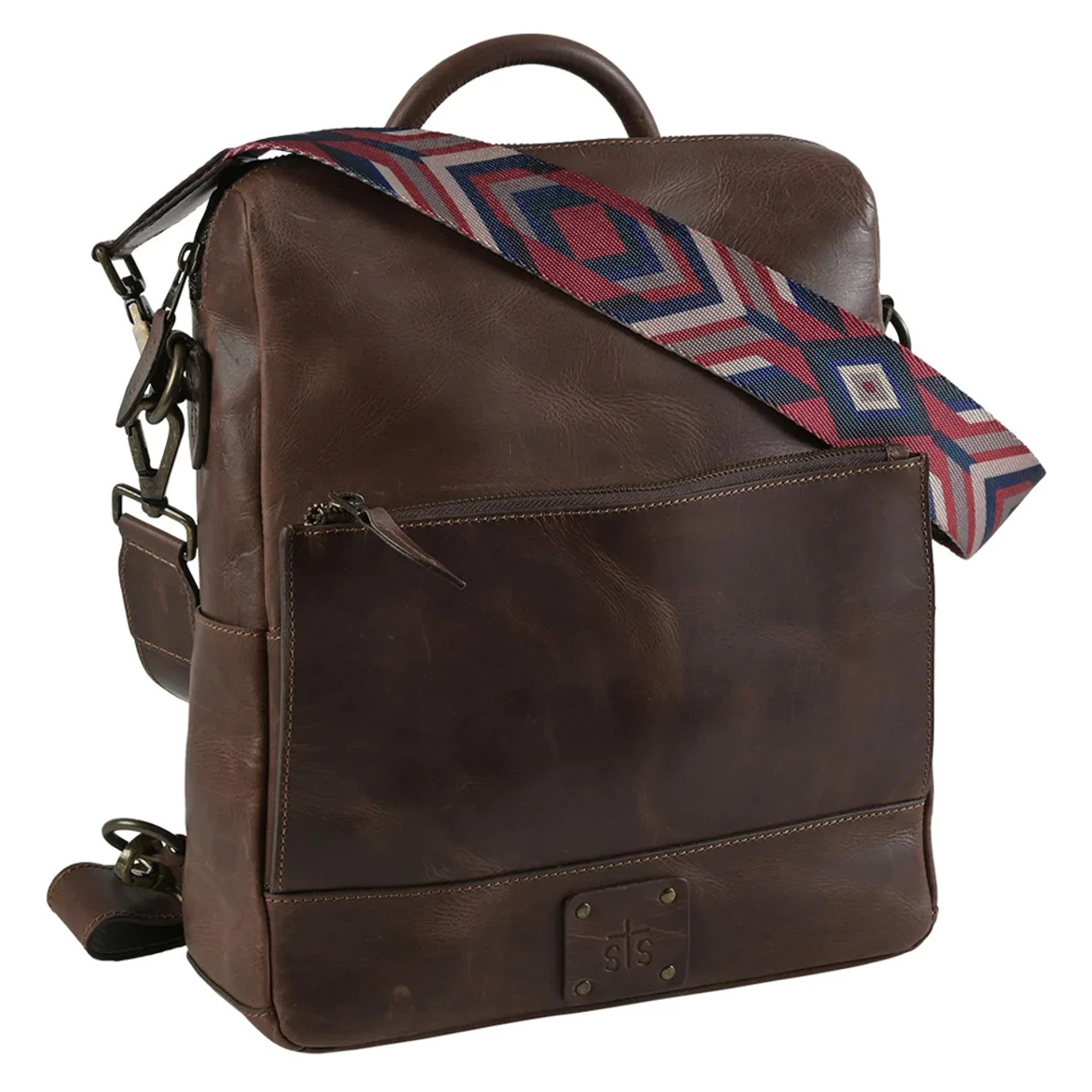 The STS Chocolate Basic Bliss Backpack (30890) has a fashionable sleek look with a colorful serape pattern making it perfect for any occasion. This model has a magnetic closure compartment with card slots and zip closure coin pocket.