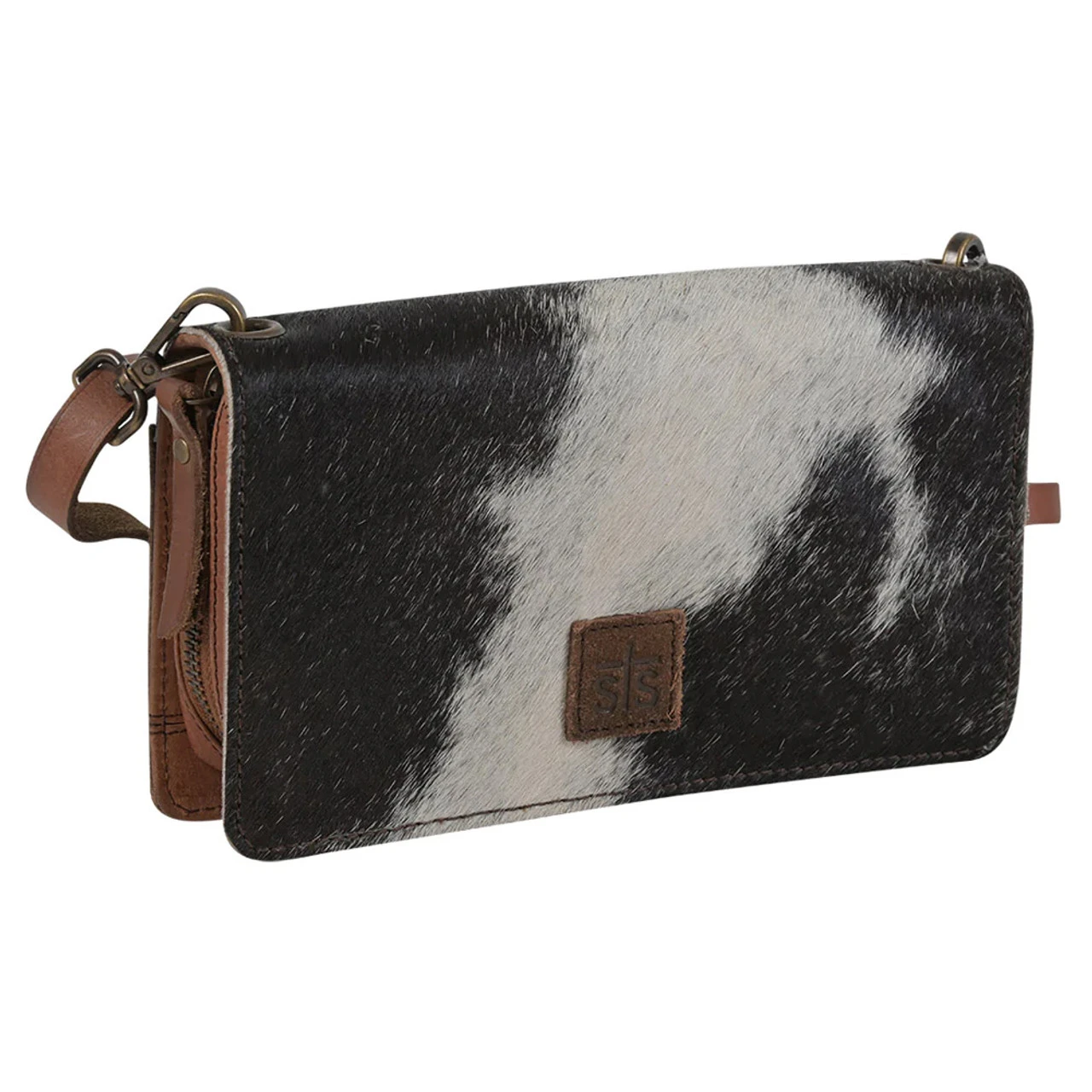 Add some western flair to your getup with STS Cowhide Saddle Tramp Evie Organizer (31376). This model has an adjustable and removable leather crossbody strap.