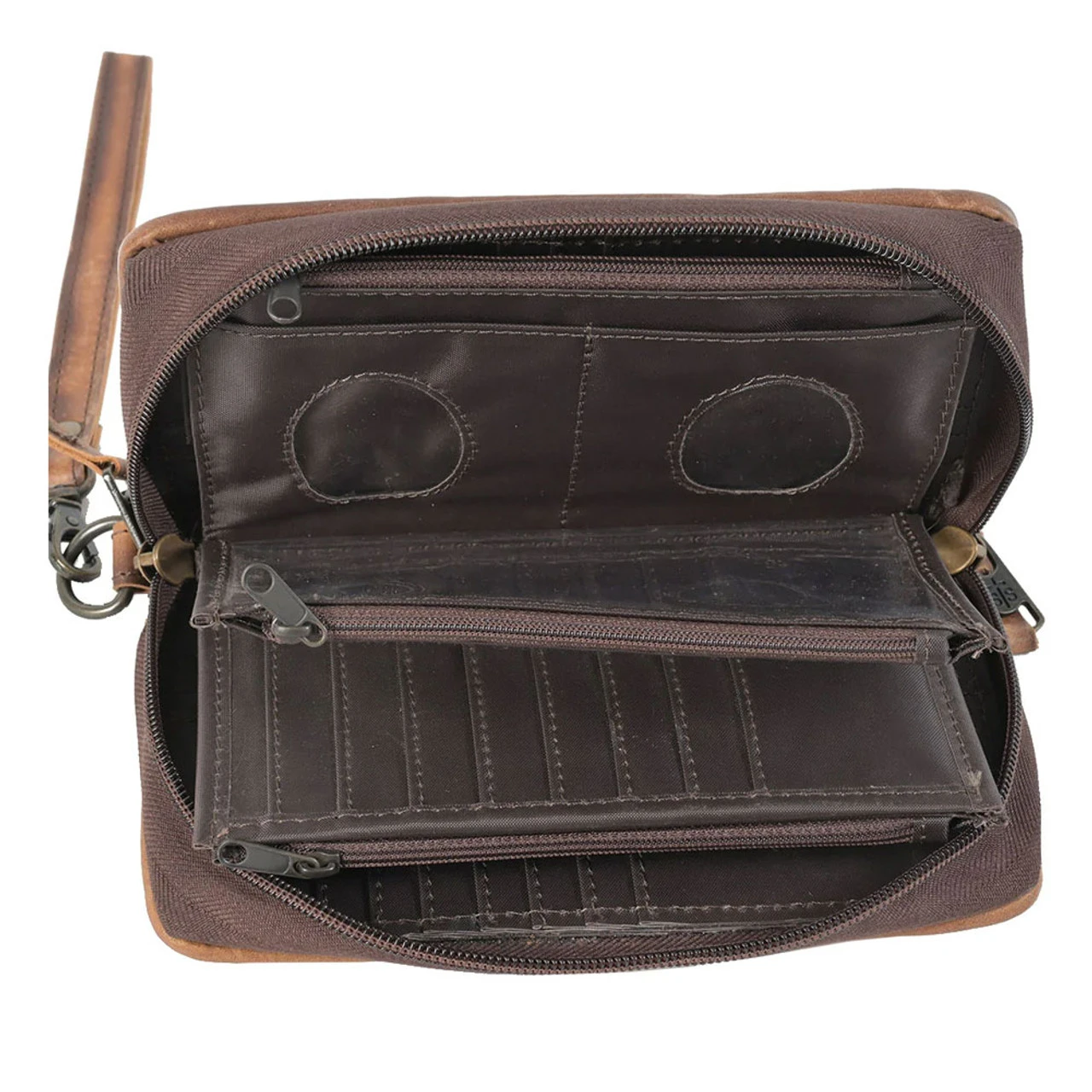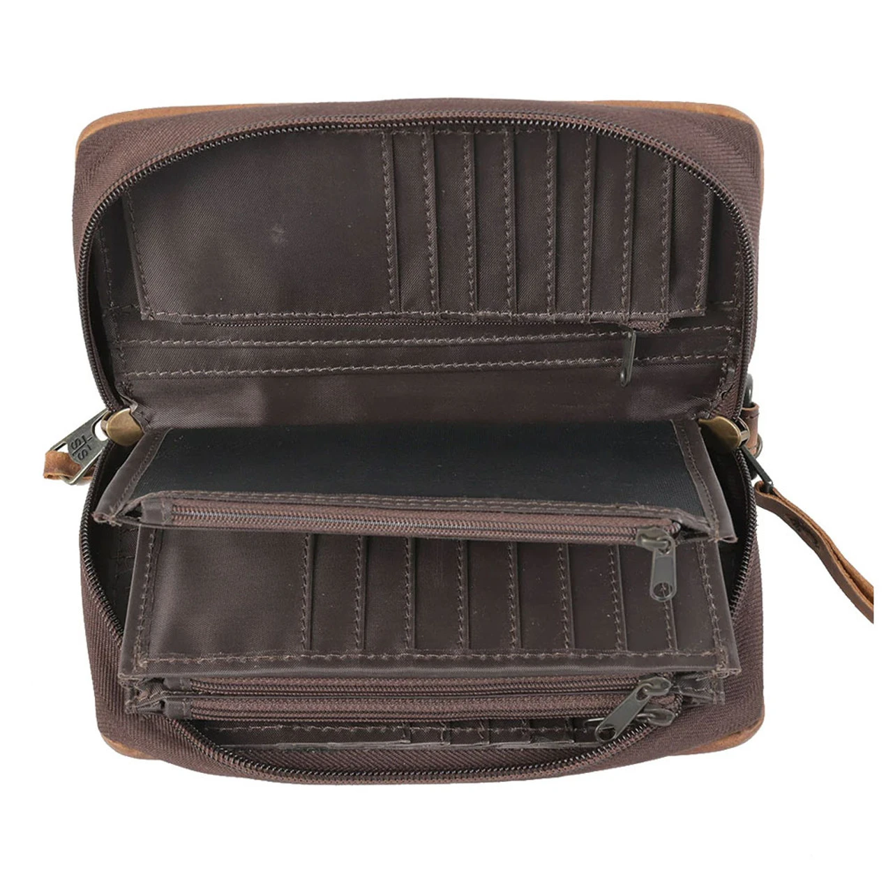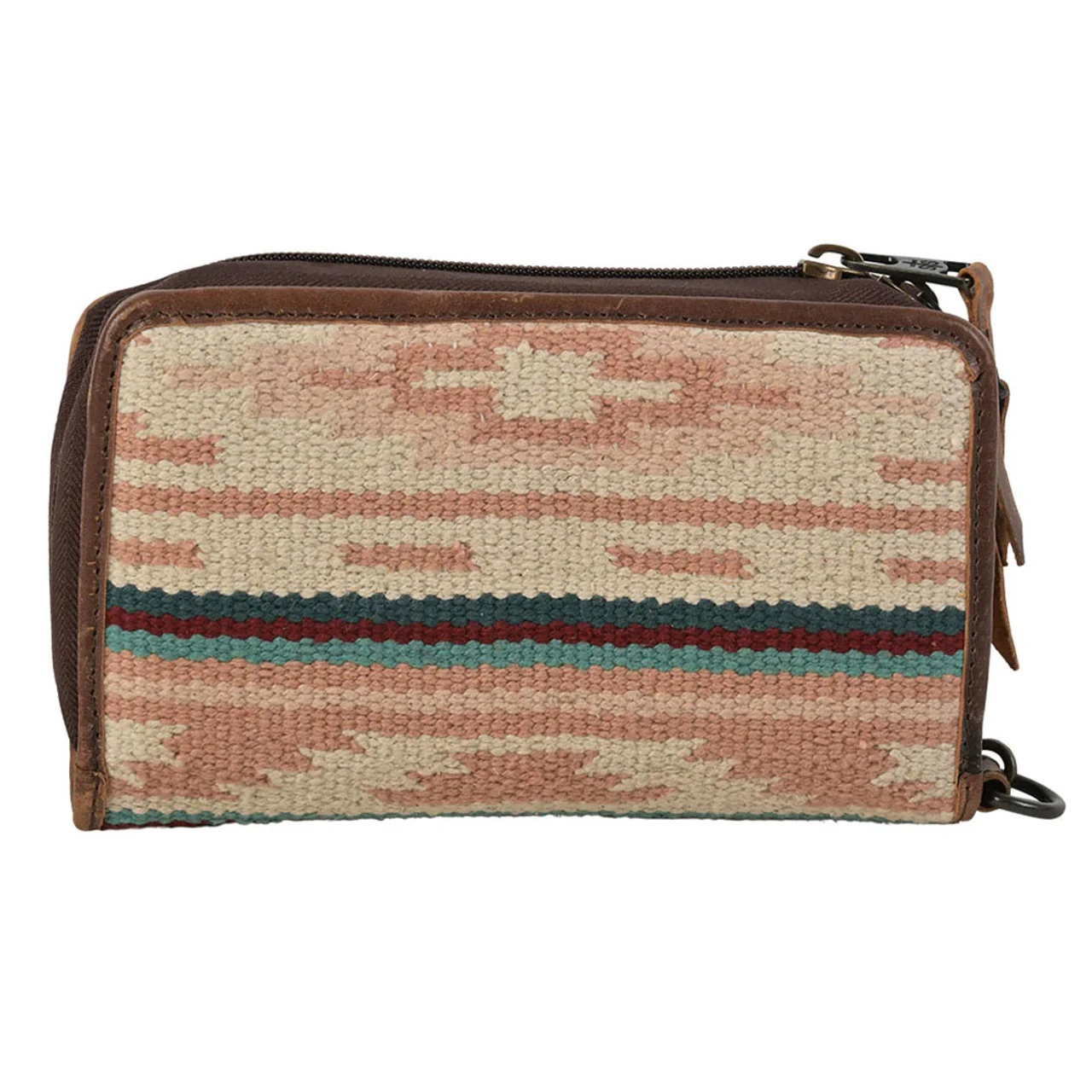 The Palomino Kacy Organizer Wallet features Aztec woven serape with genuine leather accents for a touch of Western flair.