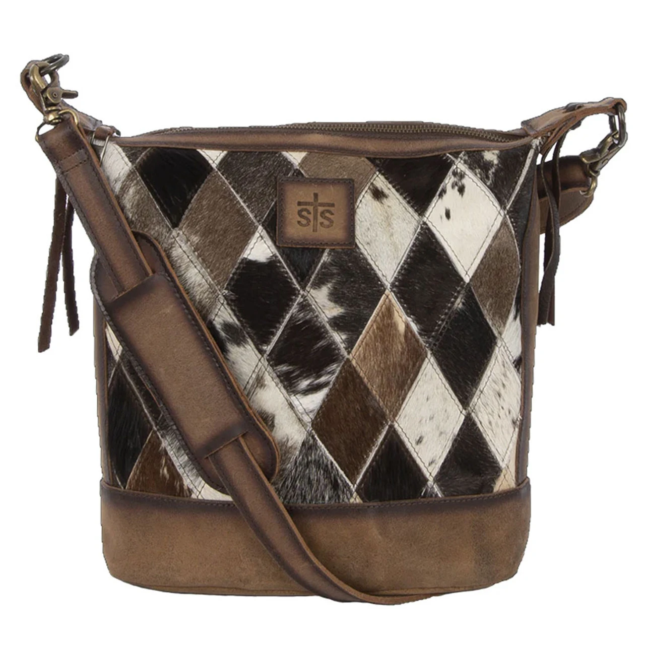 The Diamond Cowhide Mail Bag offers an exquisite Western style that will compliment any look.