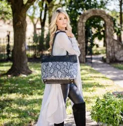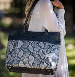 The Santana Tote is made from genuine leather embossed to resemble snakeskin adding a touch of Western style to your outfit.