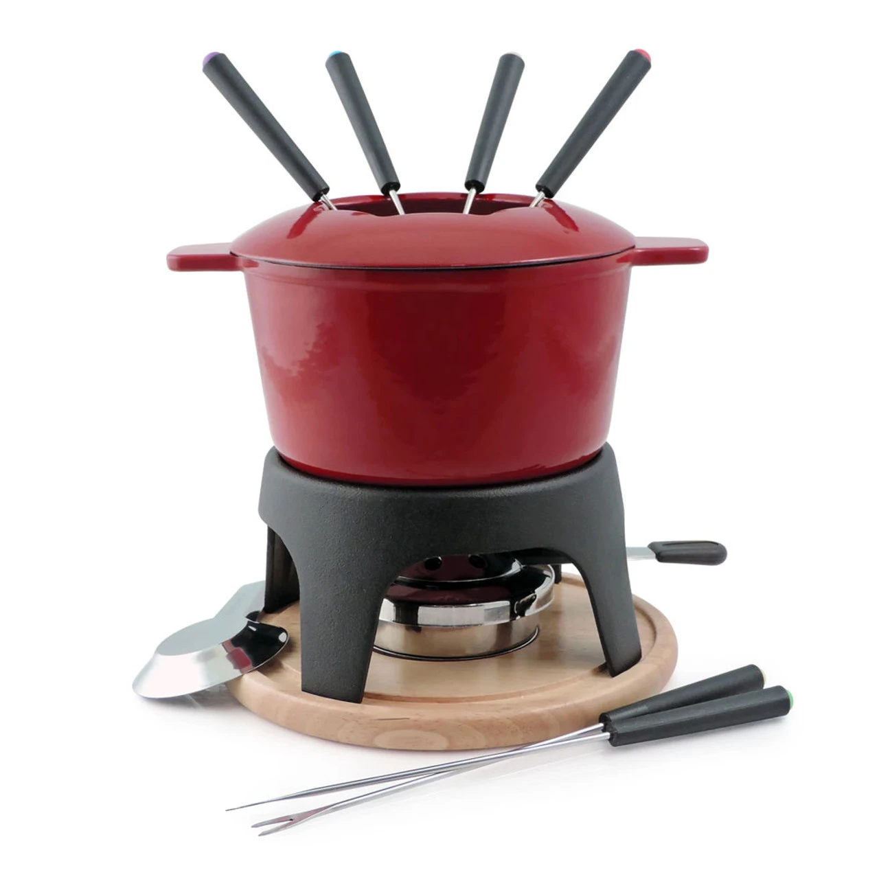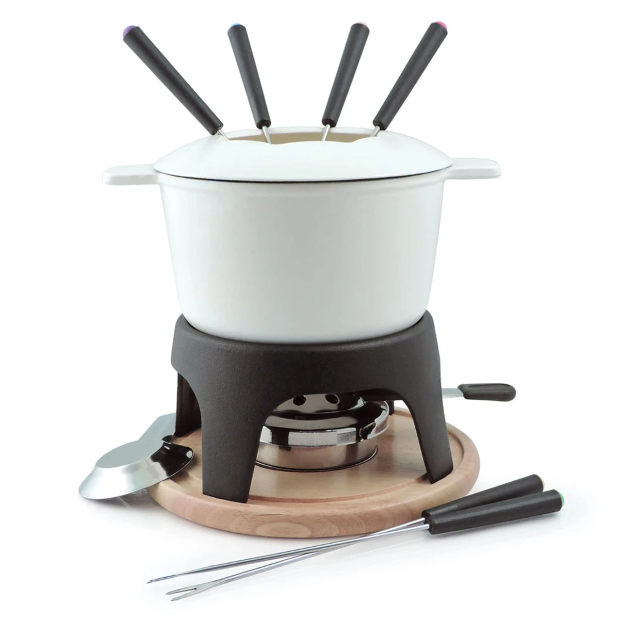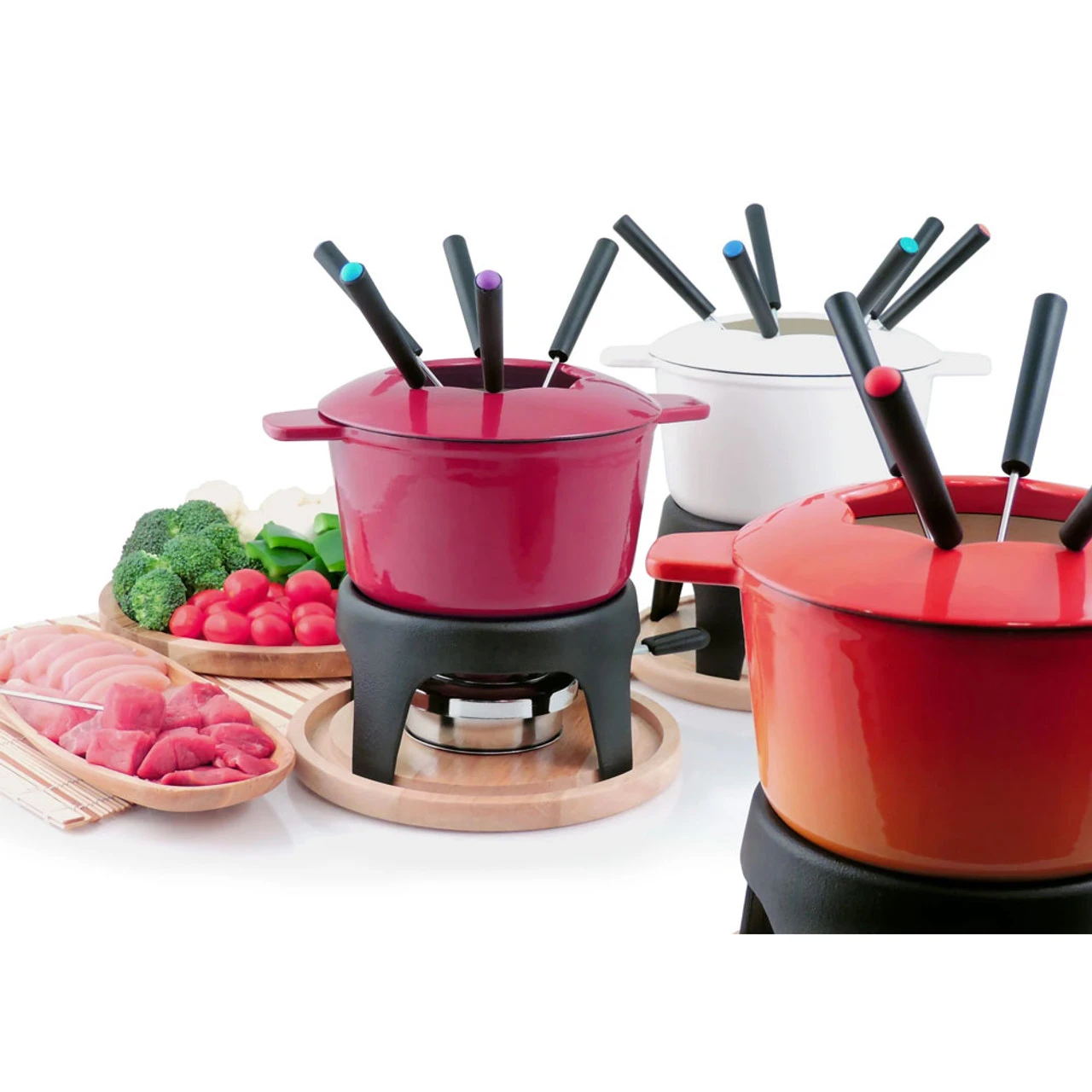The Sierra Cast Iron Fondue Sets offer the utmost in versatility. In addition to their décor savvy color pallet, they are ideal for meat, cheese and chocolate fondue. Cast iron pots provide even heat distribution, making them ideal for cooking at both high and low temperatures – without hot spots.