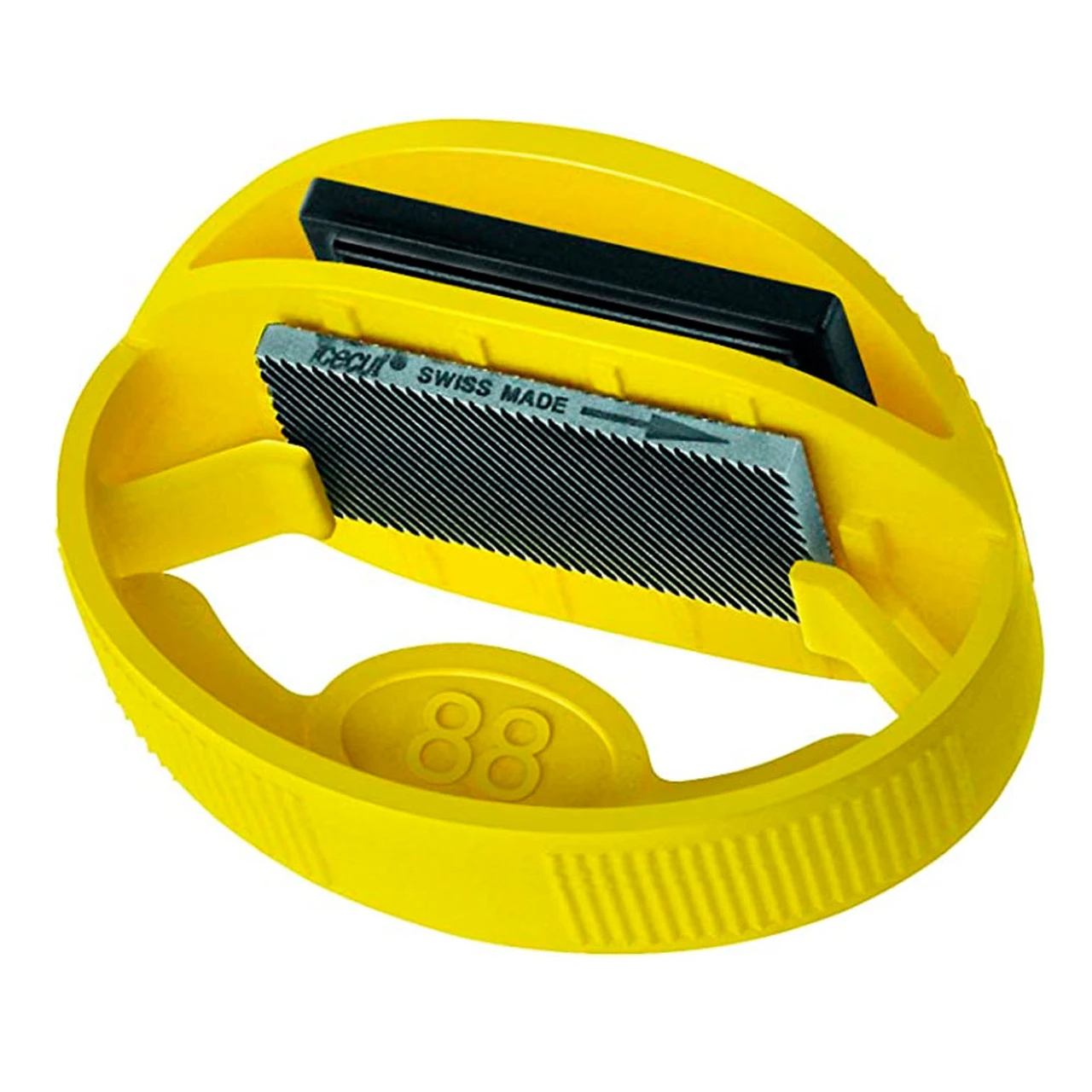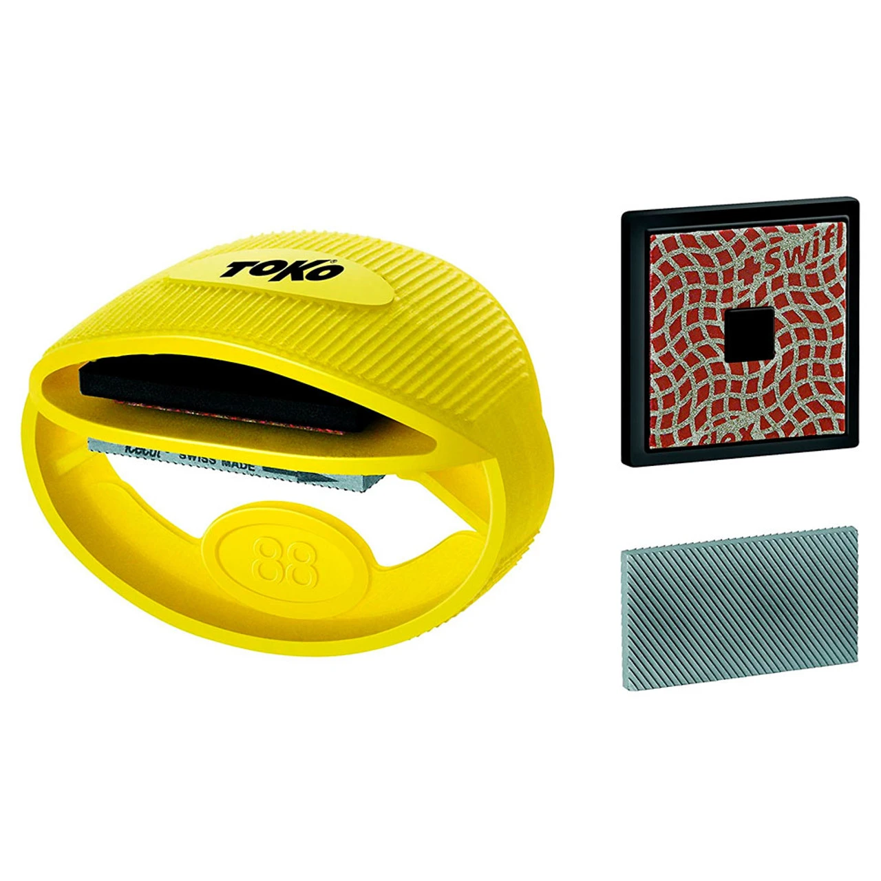 The Toko Express Tuner Kit is a handy pocket tool for simple edge preparation. With this tool in your pocket, you can easily resharpen your edges on the slope. The kit version also includes a coarse diamond file for touching up damaged areas and any kind of hardening on the edge. The diamond file can easily be stowed away in the tool.