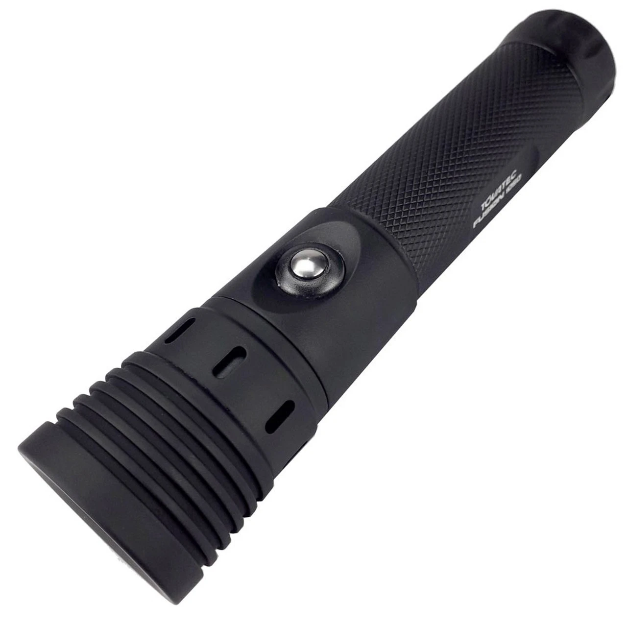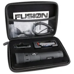 The Fusion 1050 is a great all-around dive light with its adjustable 12 degree to 100 degree beam angle and 1050 lumen output. This midsized light is small enough to fit in your BCD pocket as a backup or powerful enough to be used as a primary light and versatile enough to be used as a video light. With the adjustable beam angle you can add an adapter to your camera tray arm and turn your light into a 180 degree video light. Includes lanyard, 18650 Li-ion battery, charger, USB cable and padded case.