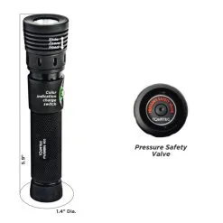 The Fusion 400 is a small light with all the big light features. The big light features include adjustable beam angle 12 to 100 degrees, pressure safety valve, 4-way visual battery charge indicator (green = full; yellow = half; red = low), and removable head all in a small package with a 400 lumen output.