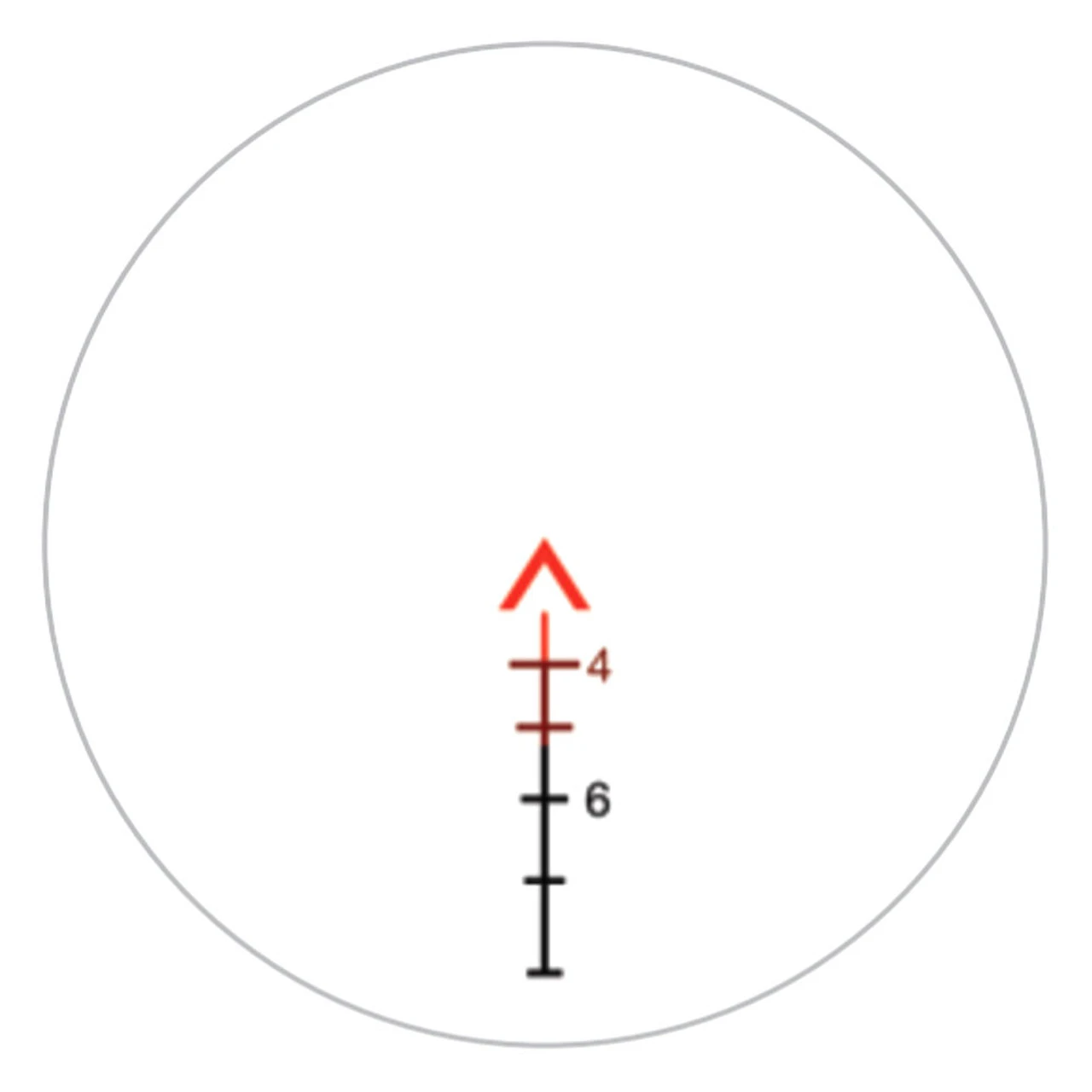This model comes with a Red Chevron BAC Reticle. The ranging reticle is calibrated for 7.62 (.308 cal) flat-top rifles to 800 meters. Includes Flat Top Adapter. The chevron reticle is designed to be zeroed using the tip at 100 meters. The width of the chevron at the base is 5.53 MOA which is at 19″ at 300 meters. This allows range estimation for silhouette targets.