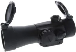 The Traditional 2×42 Red-Dot Sight includes see-thru / flip-up lens caps and runs on a 3V-CR2032 battery (included). It is covered by Lifetime Limited Warranty.
