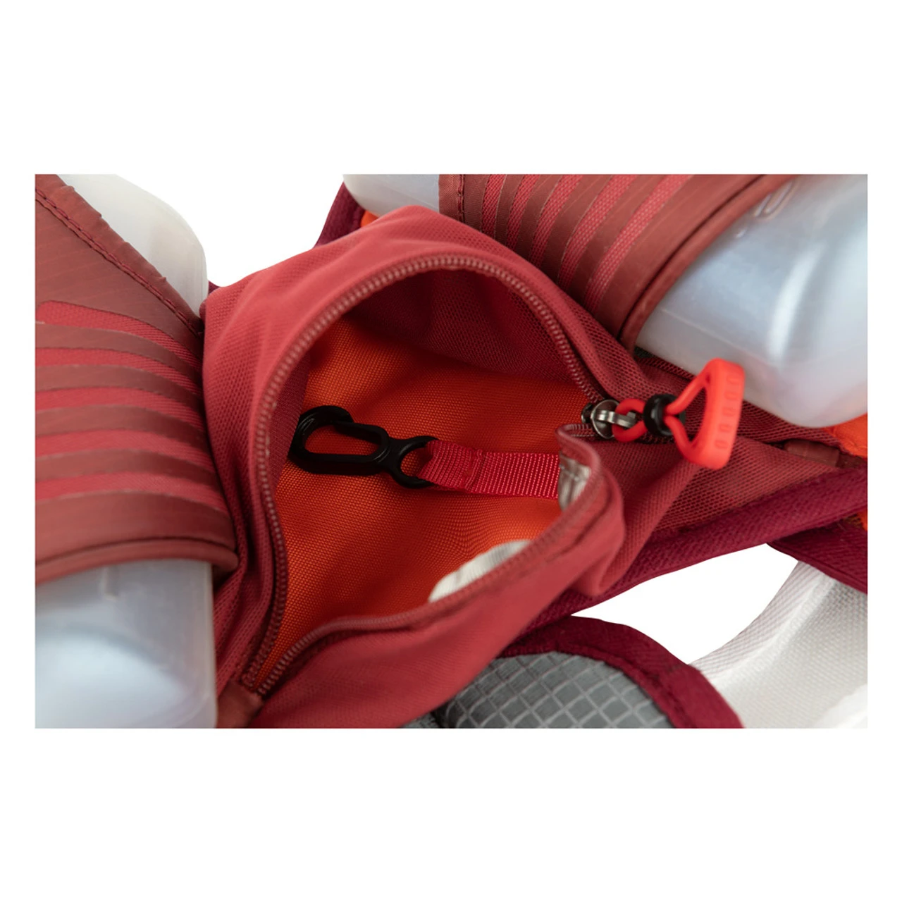 In addition to hydration holsters, this pack is equipped with a 4-way stretch mesh zippered pocket to hold items you may need for later. For items you need more frequently, each holster also has a quick stash pocket for rapid access. The front of this waist pack is also equipped with a functional 4-way stretch mesh pocket capable of carrying a large cell phone and Z-pole attachments to quickly access or stow trekking poles on the go.