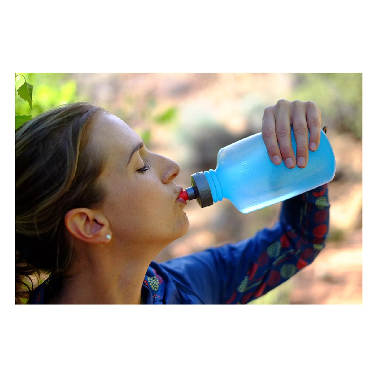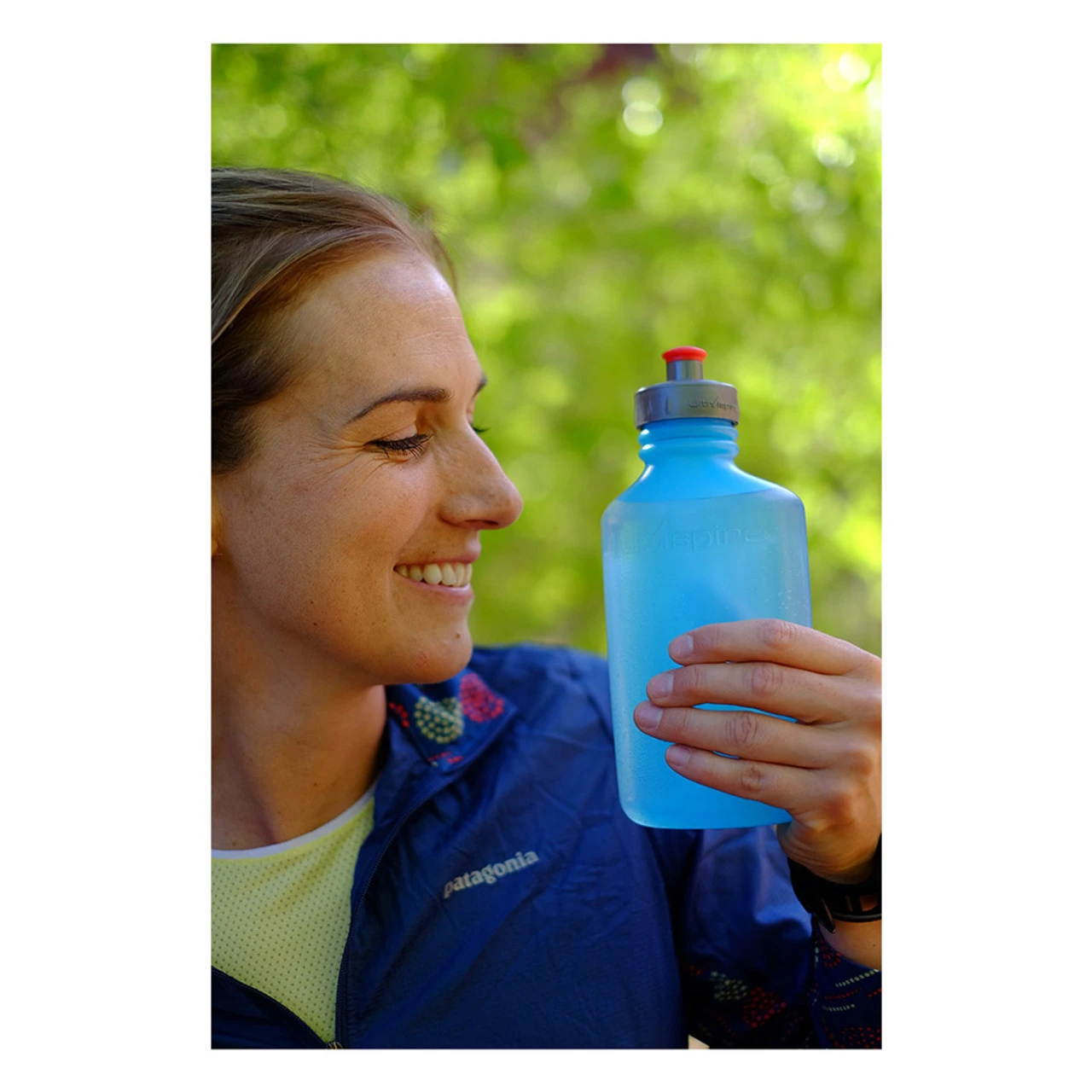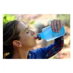 The light weight super-squeezable Ultraflask stands alone, is fillable and easy to clean, has high flow and fast recharge, is soft, flat and stable against the body, is easily accessed and returned to a vest pocket even when empty, and its great for waist packs too! The Ultraflask 550 Hybrid Bottle is BPA free.