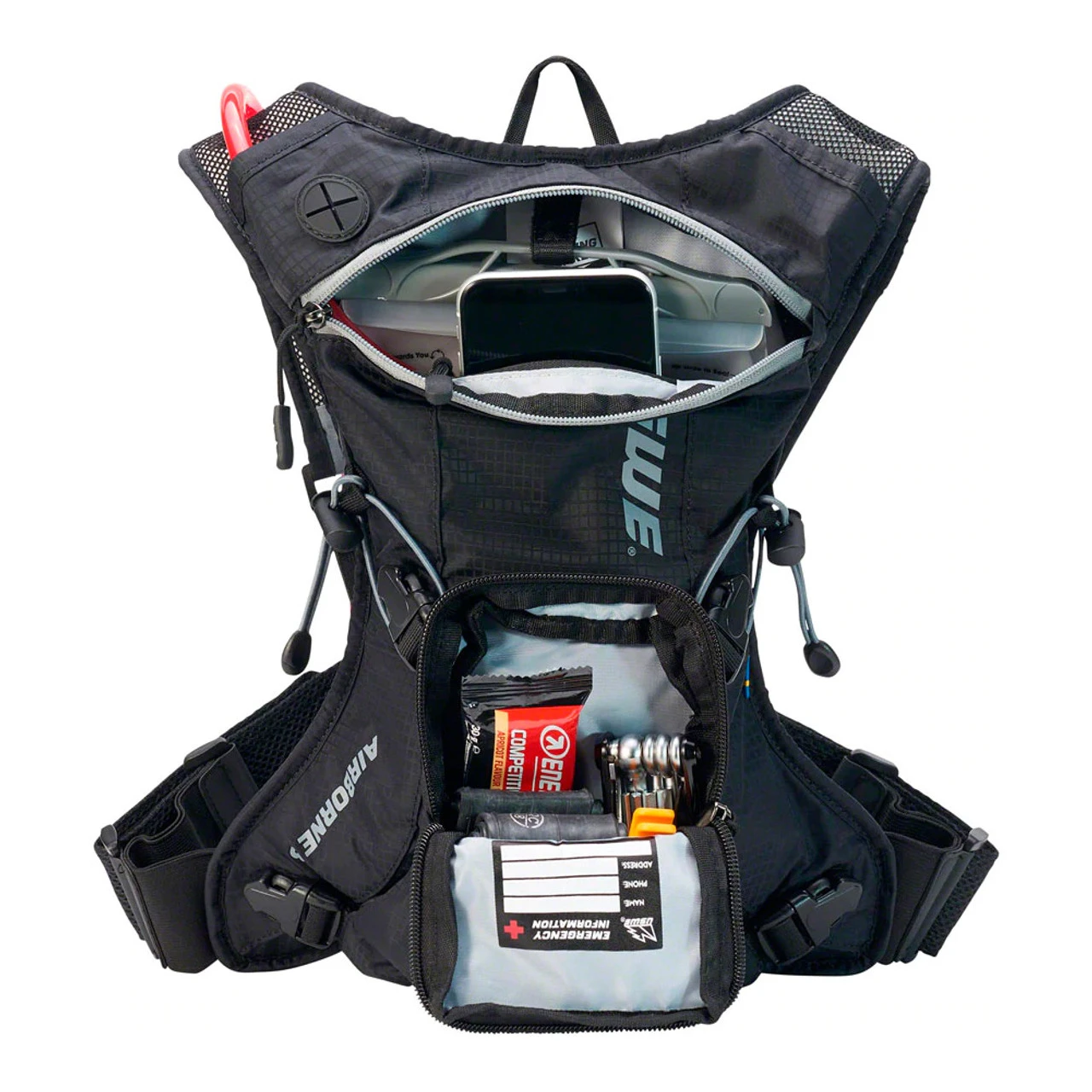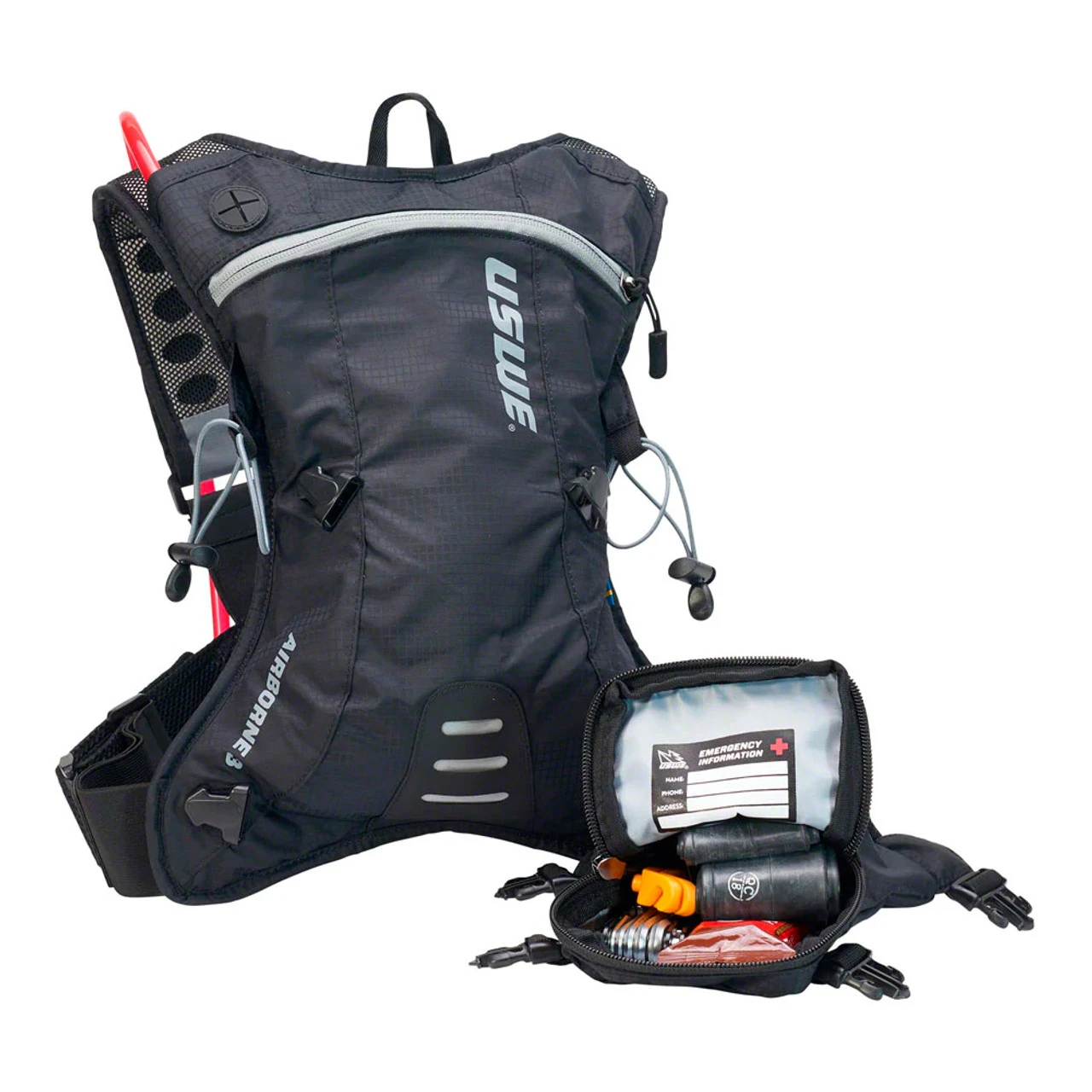 Airborne 3L is USWE’s most popular lightweight race hydration pack among racers. The total pack volume of 3 liters can be easily transformed into a 2 liters by clicking off the externa l multi-pocket organizer where you carry tubes and tools. The race frame is equipped with highly-ventilated and ergonomic should er straps from the best form-fit ting product available in the market. The pack comes with a premium 2.0 liter Hydrapak Elite hydration bladder with a Slide-Seal top and Plug-N-Play coupling for easier handling.