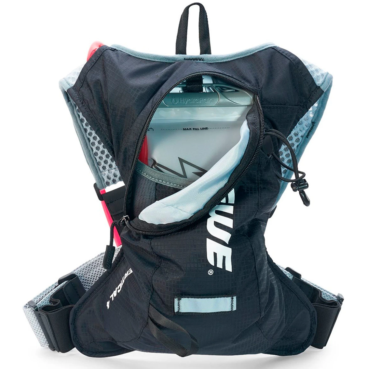 The USWE Vertical 4L Plus is a lightweight hydration backpack designed for the performance minded, multi-sport enthusiast who needs 4L of storage capacity to carry personal gear and hydration. Equipped with soft mesh, highly ventilated shoulder and chest straps and built on the NDM 4-point harness system, the Vertical 4L Plus offers a great fit. Inside the main compartment there are several pockets for your gear and first-aid kit, and a 2L Hydrapak Elite hydration bladder with Slide-Seal top and Plug-N-Play coupling for easier handling.