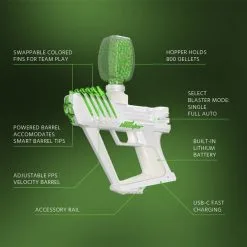 The Gelblaster SURGE delivers safe, clean backyard fun for the whole family! Designed from the ground up to make back yard blasting safe and fun for all ages, the Gelblaster Surge is a fully automatic, electrically powered gel blaster that fires environmentally safe, water-based gel pellets called Gellets that immediately begin to evaporate after impact, meaning less mess and more fun!