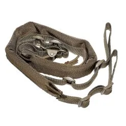 The Viking Tactics Hybrid Sling has the wide padded mid-section for increased comfort when carrying weapon, light weight free running ends for smooth adjustment, and rubberized pull tab with VTAC logo for ease of adjustment and a tactile feel. Double acetal resin tri-glides in each adjustment section for added strength and durability.