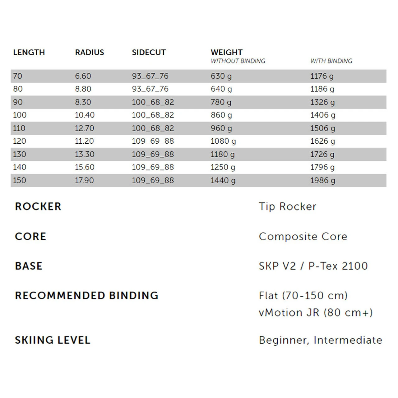 The Deacon Junior Skis give kids a proven level of learning proficiency and ease of turning thanks to its scientifically designed shape, soft flex and tip rocker design. The vMotion JR binding is GripWalk JR compatible.