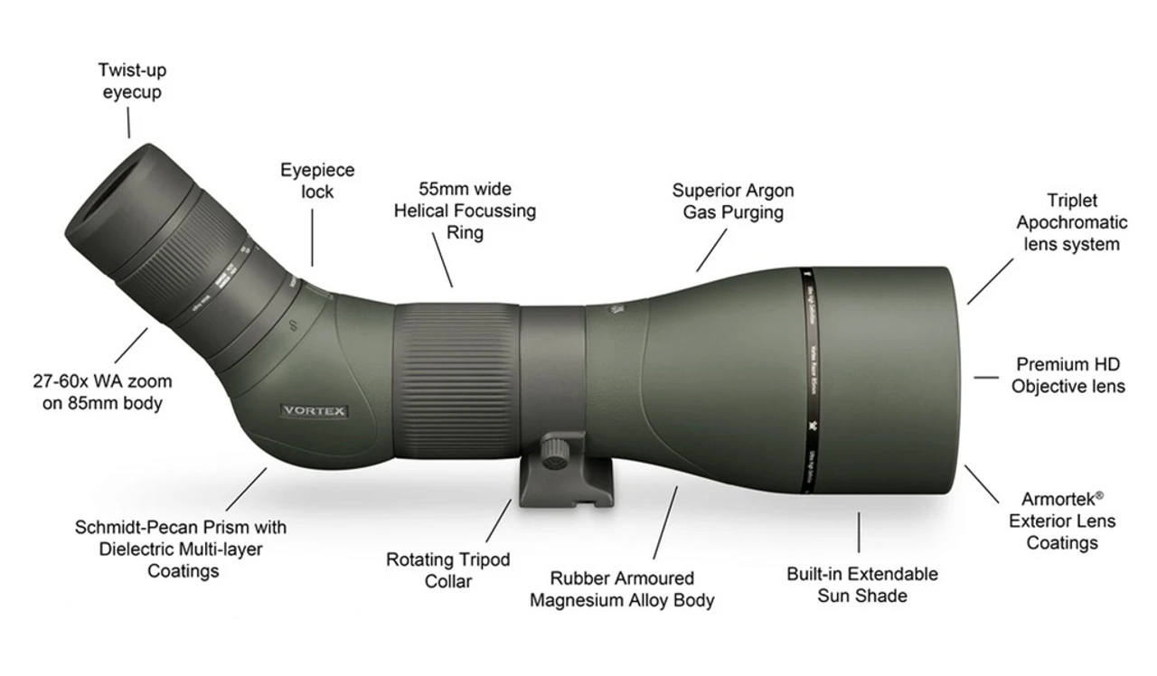 Features of VORTEX Razor HD 27-60x85wa Spotting Scope Angled RS-85A
