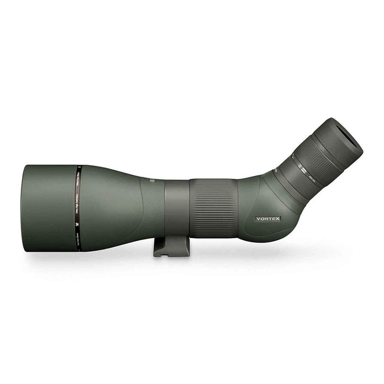 Setting a new standard in high-end optical technologies, precision craftsmanship and ultra-sleek functionality, the Vortex Razor HD 27-60x85mm Angled Spotting Scope is one of the finest spotting scopes on the market. Premium HD glass lens elements, painstakingly hand selected and precision-ground to exacting standards, deliver brilliant, razor-sharp, true to-life views. Advanced optical elements eliminate aberrations for distortion-free, flat field images with unmatched edge-to-edge sharpness, remarkable clarity, resolution, and color accuracy. Fully multi-coated with XR coatings, Razor spotters yield maximum light transmission – an extremely critical attribute when finding and evaluating game in low light.