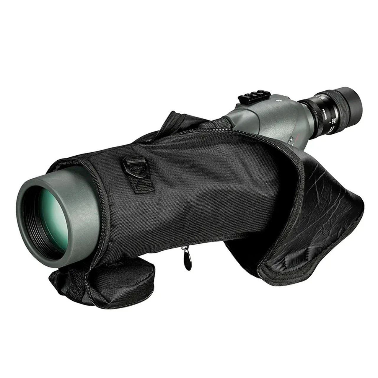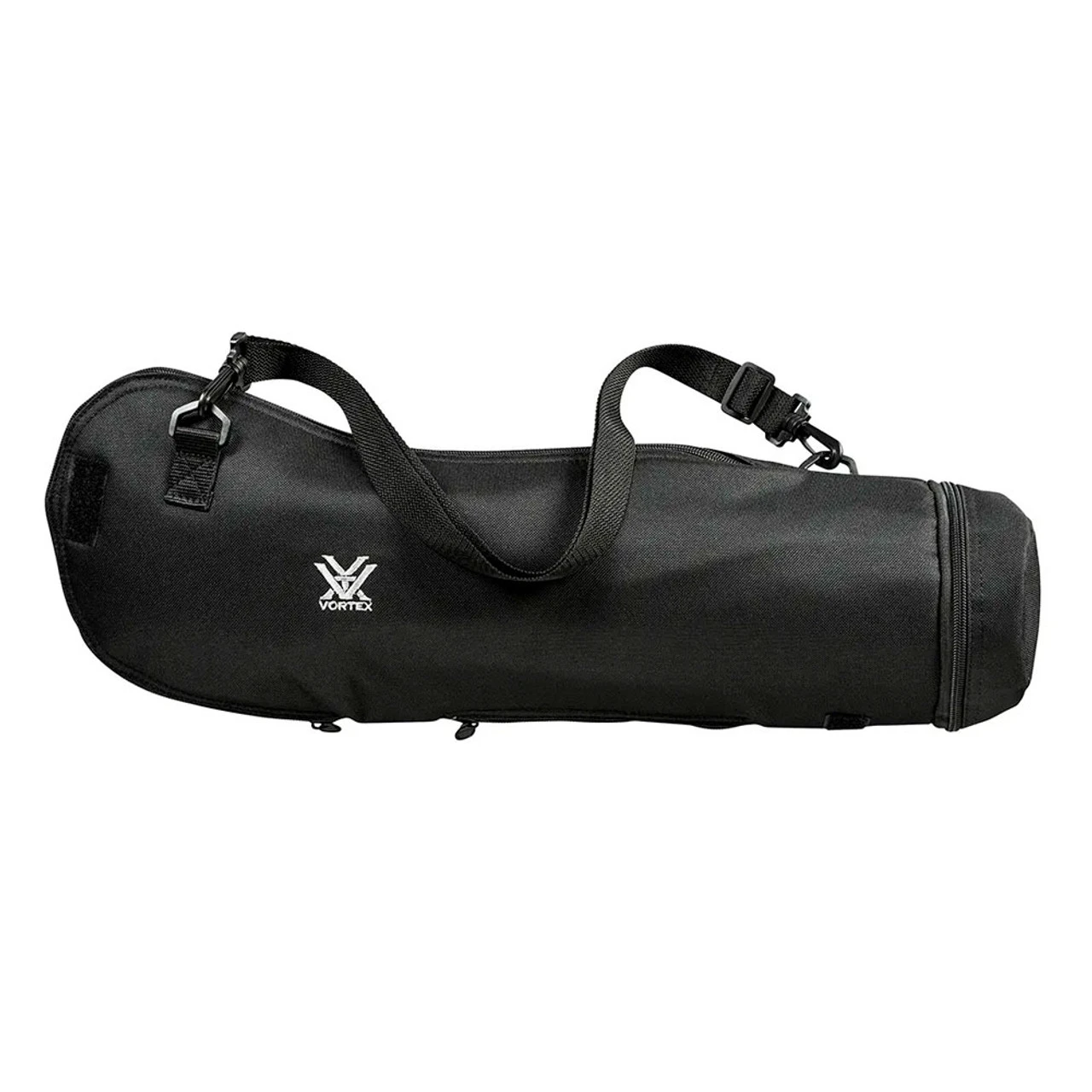 Designed for their straight and angled Viper 80mm spotting scopes, the Vortex Viper HD 80mm Spotting Scope Case protects both the body and eyepiece from damage during transport and storage. It is made to remain on the scope even during use for fast setup and breakdown, with zipper closure and a removable shoulder strap.