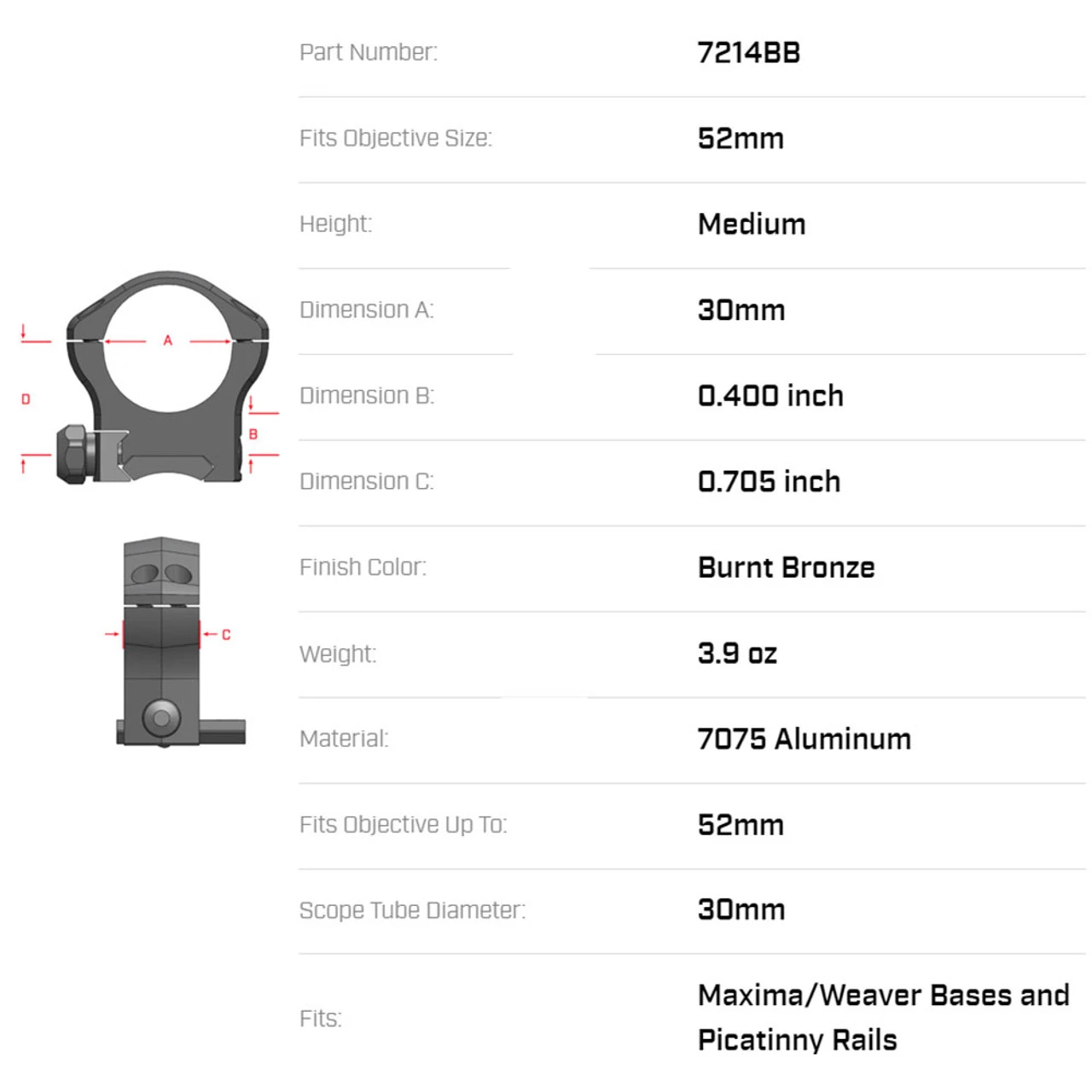 Features of WARNE Mountain Tech 30mm Medium Bronze Rings 7214BB
