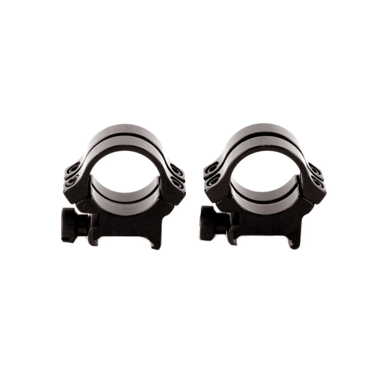 Two straps and four screws provide added gripping power for these lightweight, all-aluminum rings. Thumbscrews for quick detach.