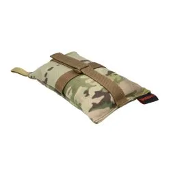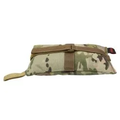 The Competition Steady Rest Bag was designed for competitive shooters as a multipurpose bag. The CSRB is used as an adjustment for elevation under the rear of the rifle stock with the short strap for securing the CSRB to your hand. The long strap is to slip over the legs of your bipod to shoot off of hard surfaces and barricades. The bipod strap is fully adjustable with Velcro, allowing you to “snug it up” to the bipod legs. With the CSRB adjusted securely, the bag will not fall off with bipod legs deployed or stowed. In a stage that you need to move from prone to barricade, it can ride on the bipod the whole stage.