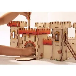 Recreate the medieval battles with this WOODBY Fortress 3D Puzzle made from natural wood. Build the fortress as either a “Defensive wall” or a “Closed courtyard”. Decorate the walls of your Fortress with pencils, watercolors, paints or markers.