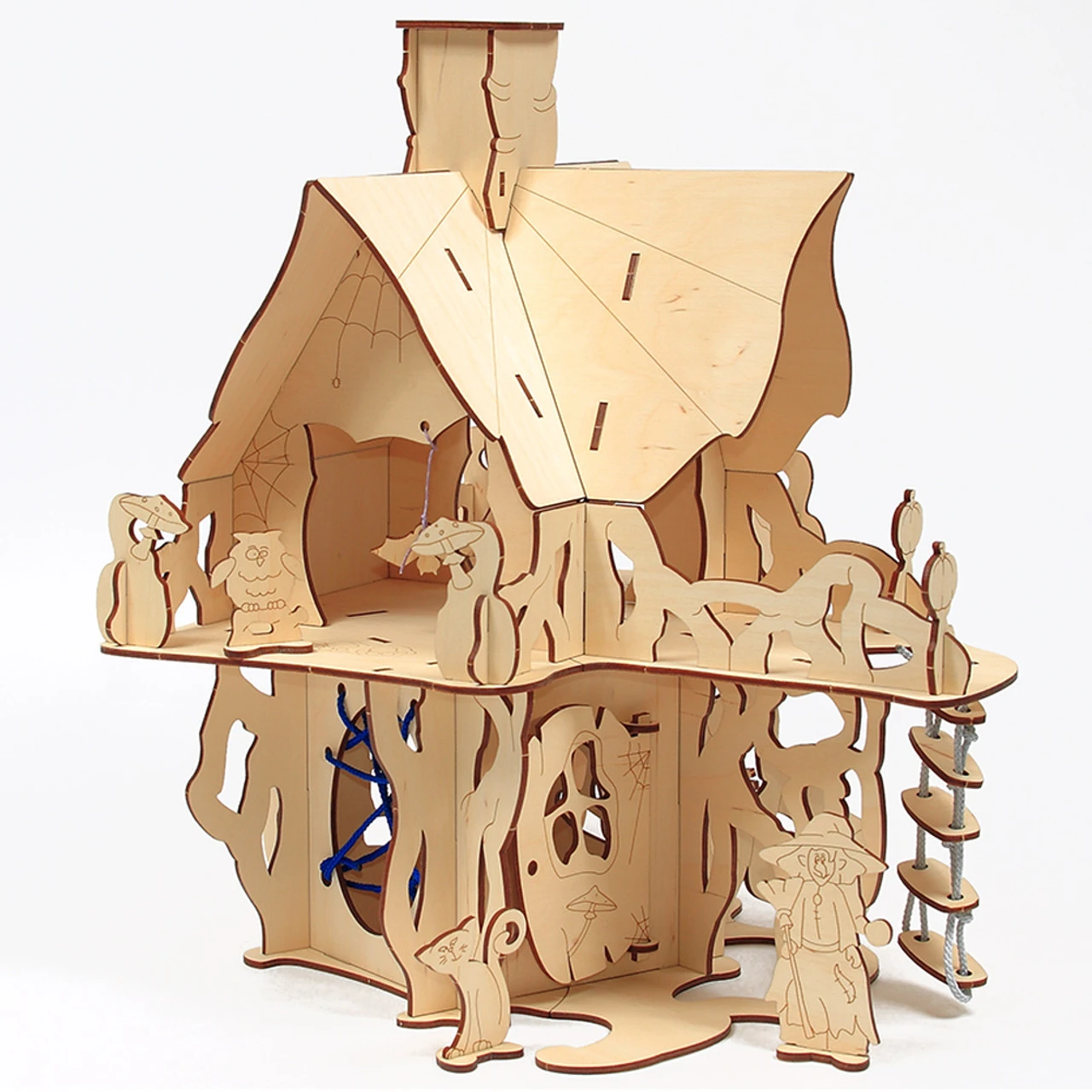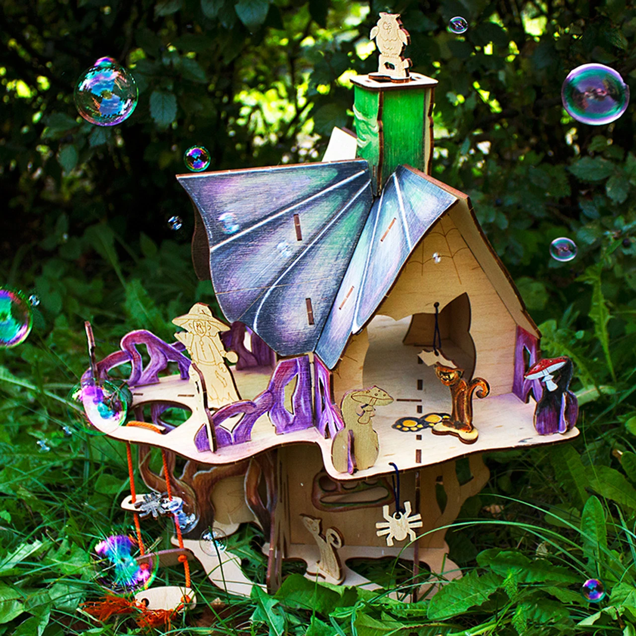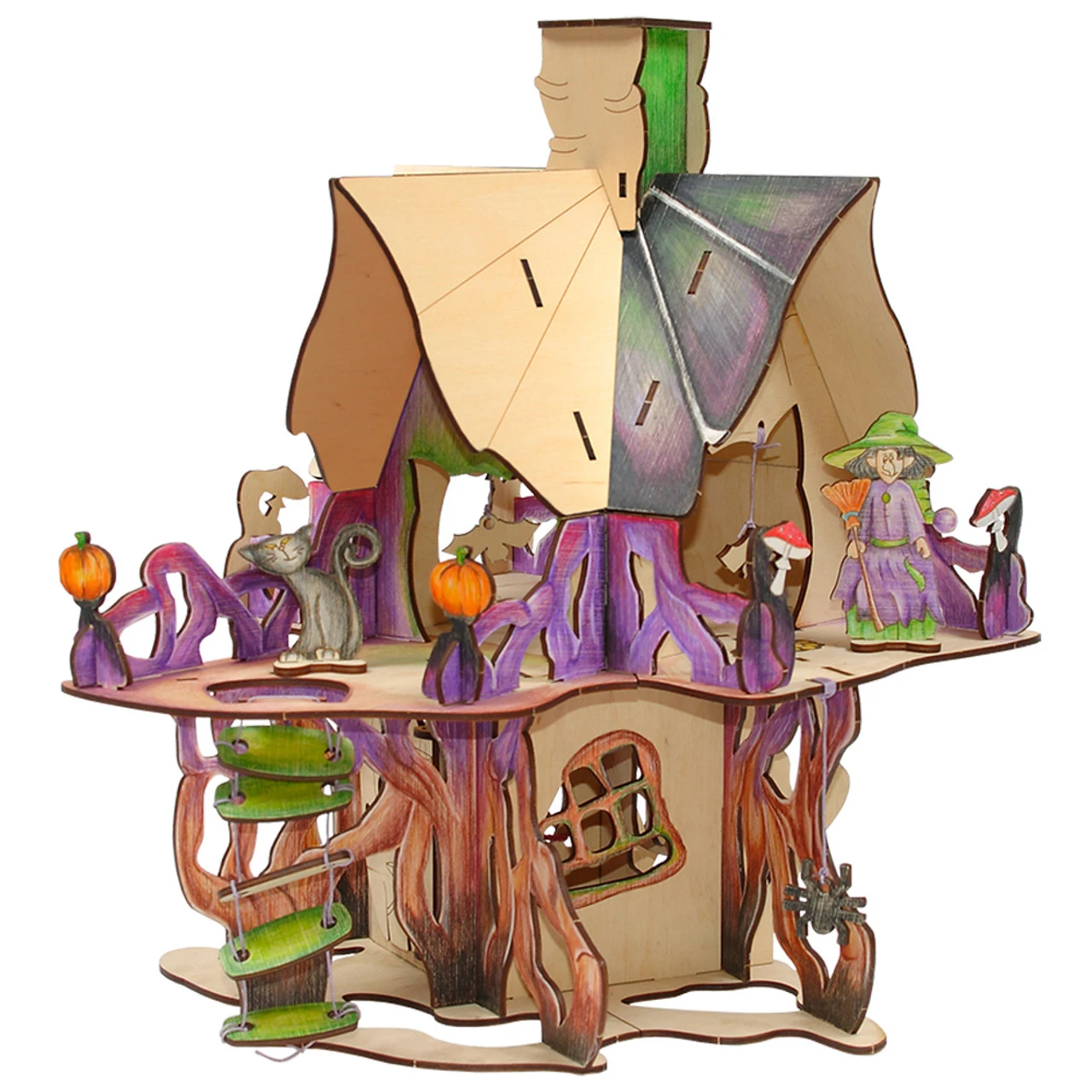 Build a Wooden Castle of a Wicked Witch. In the magical forest in a dark swamp, sits a mysterious house rooted in the ground and hidden from prying eyes under a thick poisonous fog. In the enchanted house, treasures are protected by the strongest web in the world. There is an entrance to the dungeon, where at each full moon, a magic potion is brewed.